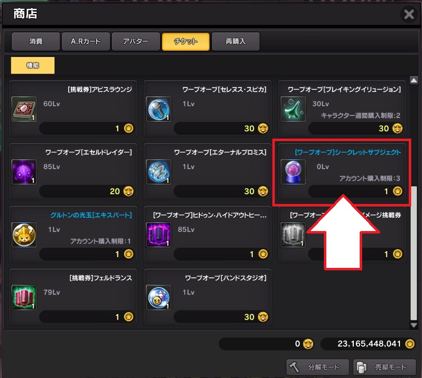 ▼イベントメイズ「シークレットサブジェクト」で獲得できるアイテム