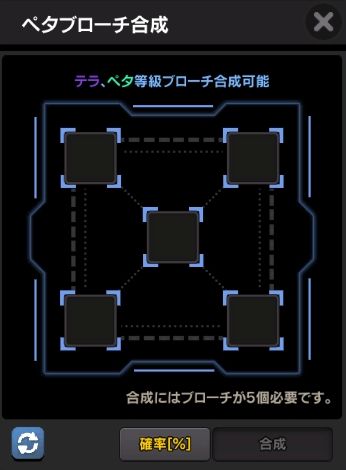 ・合成時、様々なキャラクターのスキルに対応したペタブローチが出現します。