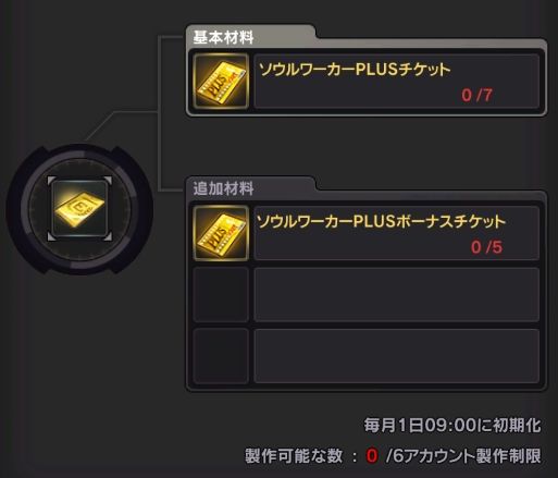 「ソウルワーカーPLUSボーナスチケット」5枚を使用して製作することができます。