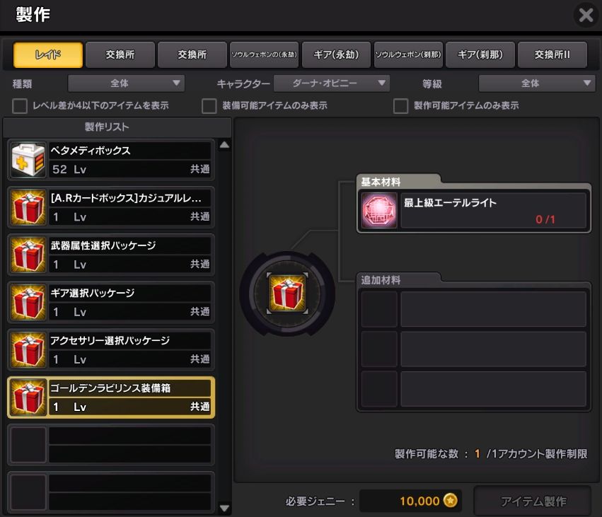 ・特殊装備変換剤を使用して「NPCイオ>レイド」から各種装備のパッケージを作成できます。