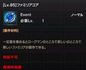 ・エセルドレイダのNPC「ローグマン>製作」で、[Lv.85]ファミリアコアを使用して