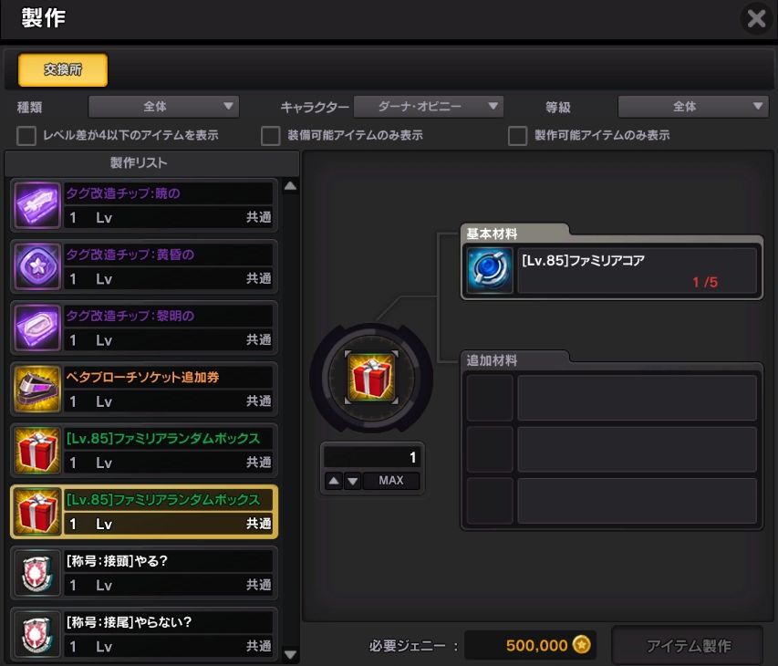 [Lv.85]ファミリアランダムボックスを作成できます。